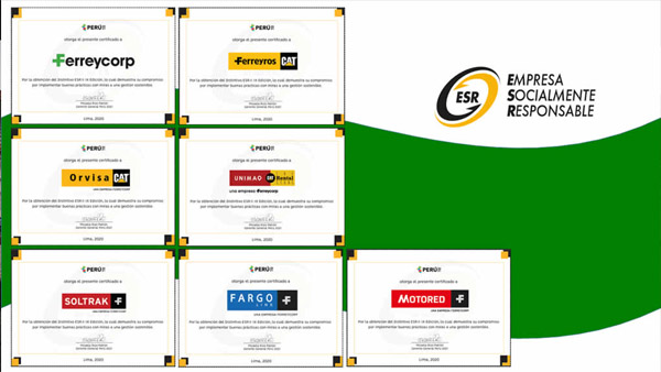 Ferreycorp y sus empresas Ferreyros, Fargoline, Soltrak, Motored, Unimaq y Orvisa obtuvieron el Distintivo Empresa Socialmente Responsable, otorgado por Perú 2021, por su compromiso con la gestión s ...